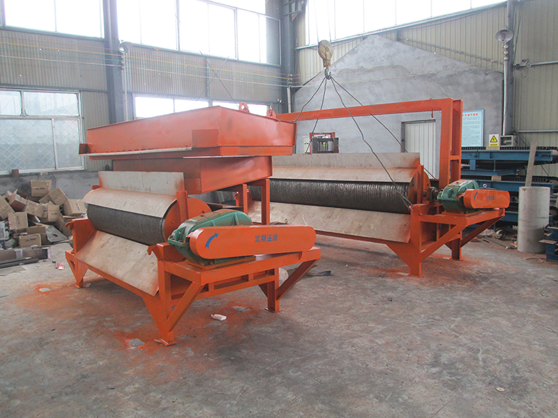 該磁選機為輥式強磁濕式磁選機,是專為細粒弱磁性礦分選而設計的,采用弱磁磁筒除鐵,強磁磁輥分選方式實現礦選。輥式機型磁系為360度磁系,采用耐磨毛涮+沖水管卸礦方式,機型按處理礦礦種不同分為順流型和半逆流型兩種槽體形式。弱磁性礦物中一般都會伴隨有少量強磁礦物,為避免強磁性礦物進入強磁輥后磁聚疊加于磁輥表面造成后繼礦物跑礦,第一筒設為半磁滾筒,磁包角為135度,磁場在1000-4000GS范圍選用,用以除去這一部分的磁鐵礦,尾礦進入第二磁輥進行弱磁性礦物的分選。本公司可根據客戶選礦流程的需要制作對應的多輥組合機型,常規組合方式有:雙輥強磁、一筒雙輥強磁、一筒雙輥強磁+單輥精選等。用途:主要應用于細粒弱磁性礦物(褐鐵礦、赤鐵礦、錳礦、鈦礦等)細粒拋尾聲或精選提純:非金屬礦物(如:紅柱石、硅線石、藍晶石、石榴石、長石、石英、鋯英石、剛玉、金剛石等)原料及產品的精致加工(除鐵、鈦等雜質):去除各種磨料產品、催化劑及其它物料的弱磁性有害雜質。